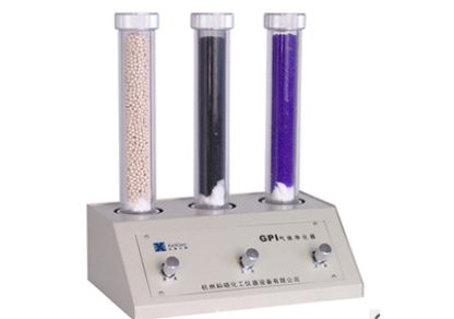 凈化器具有三路獨立的氣路流程,對氣體有害雜質進行針對性的凈化處理。如:脫除水份,可填裝變色分子篩或變色硅膠;脫除烴類(CH2),可填裝活性炭;脫除CO2,可填裝燒堿石棉等。根據不同的要求,還可以將三路串接使用,達到三級深度凈化的要求。